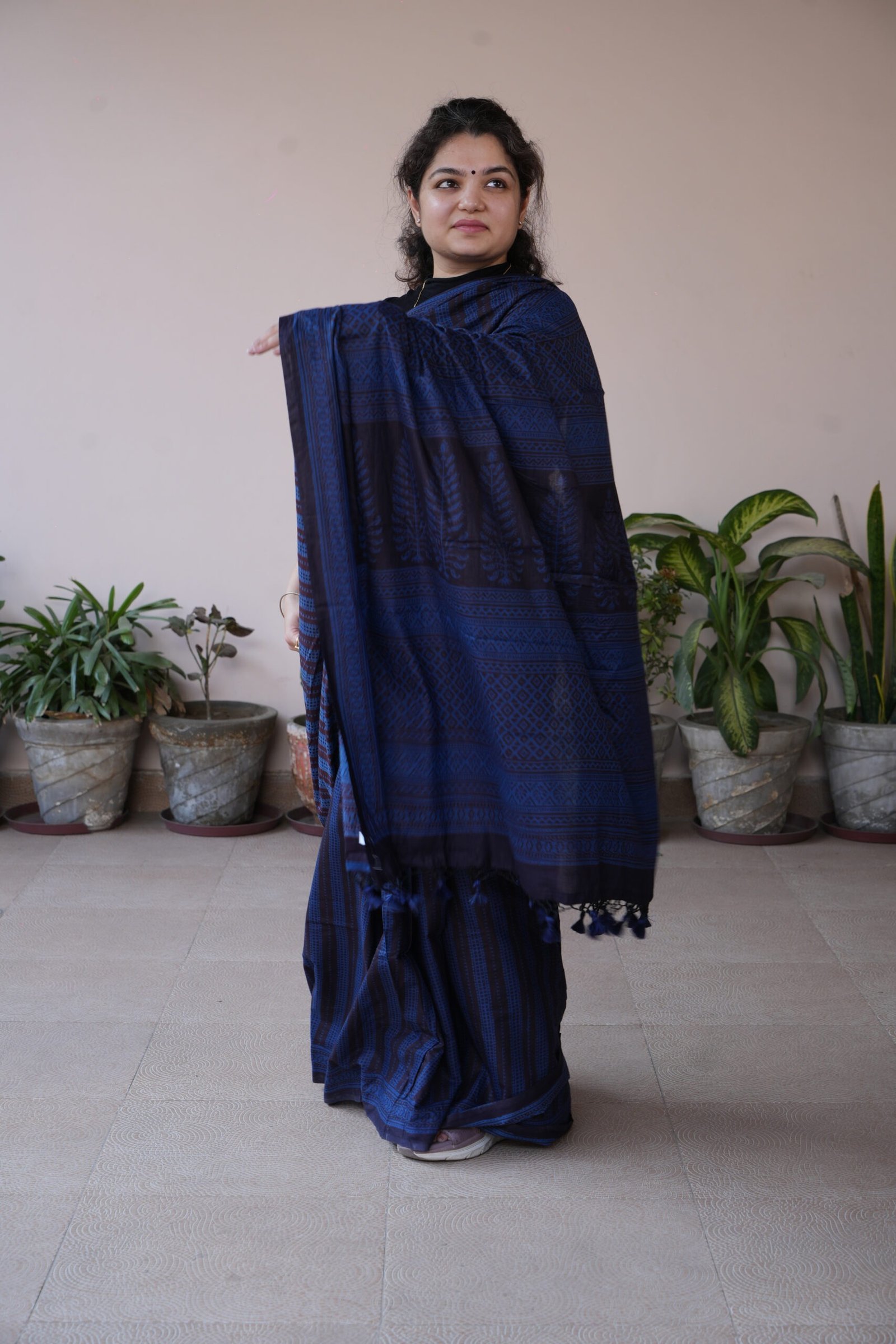 Rooted in the heart of Madhya Pradesh’s Bagh printing tradition, Neelika Jaal is a timeless mul cotton saree that celebrates indigo in its most graceful form.